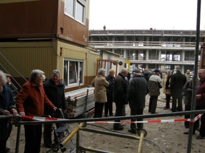 27-03-2008 Vanmiddag werd symbolisch het hoogste punt van het nieuwe seniorencomplex de Tas in Biddinghuizen gevierd. Wethouder Koning hielp met het bevestigen van de houten plaat voor de liftopbouw aan de kraan. Met een luide knal en neerdwarrelende confetti plaatsten de jongeren van de leerlingbouwplaats de plaat op het dak.