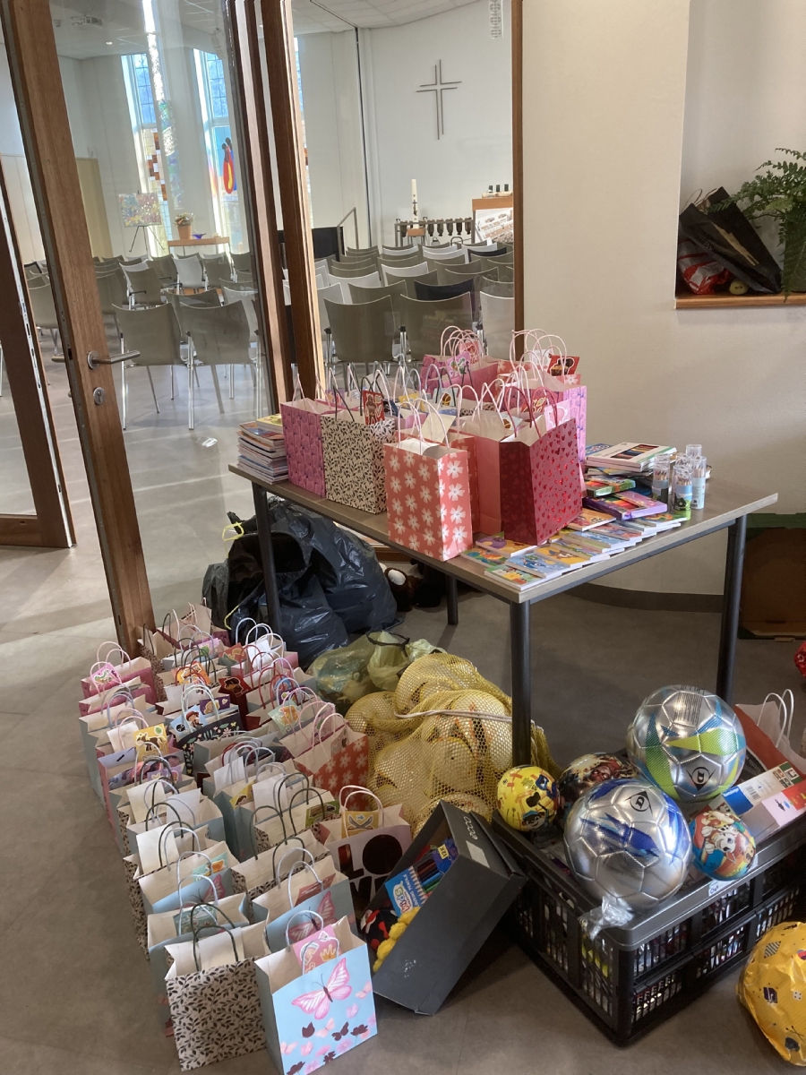 Maandag 1 december 2025BIDDINGHUIZEN - De oproep van de kerk in Biddinghuizen heeft gewerkt. Veel mensen namen een kleurboek of een bal mee naar de kerk voor de kinderen die in Noodopvang Walibi verblijven. Er is nu al voor bijna 300 kinderen een attentie. Werkgroep Diaconie vindt het geweldig en hartverwarmend, ook met de aandacht van buiten het dorp.