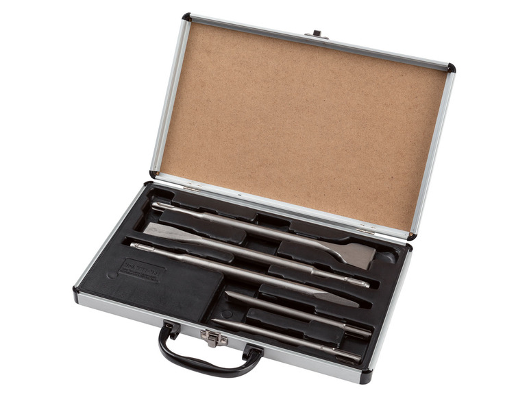 Geschikt voor boormachines met. SDS-Plus-houder. Incl. robuuste koffer. Verkrijbaar in 3 verschillende sets: Hamerboorset: Optimale krachtoverdracht met snelle boorvoortgang. Punt van hard metaal. Incl. robuuste koffer. Gebruik: steen, metselwerk, tegels. Gereedschapsset: 12 klopboren in 4 lengtes: 110 mm x Ø 5 / 6 / 8 mm; 160 mm x Ø 6 / 8 / 10 / 12 m; 210 mm x Ø 6 / 8 / 10 mm; 260 mm x Ø 12 / 14 mm. Beitelset: 3 vlakbeitels en 2 spitse beitels. Ideaal voor het verwijderen van tegels en voor lichte breek- en sloopwerkzaamheden. Gebruik: steen, metselwerk, tegels. Gereedschapsset: 5 beitels in 2 lengtes: 150 mm x 10 mm, 247 mm x 20 mm, 247 mm x 40 mm, 150 mm, 247 mm. Slangenboorset: Speciale geometrie van de punt voor schone beitelranden en een beter spaandertransport. Schroefdraadpunt voor tot op de punt nauwkeurig aanzetten. Gebruik: zacht hout. Gereedschapsset: 7 slangboren: 230 mm (l) x Ø 8 / 10 / 12 / 14 / 16 / 18 / 20 mm . . Soort : hamerset, slangboorset of beitelset. Kenmerk: