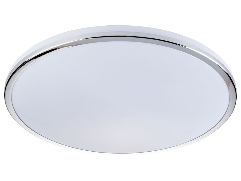 Livarno. Home. LED-plafondlamp. Eigenschappen. Aangename, niet-verblindende verlichting. Duurzame. LED-module met warmwit licht. LED-module permanent geïnstalleerd en niet dimbaar. Chromen decoratiering: frame in chroomlook. Witte decoratiering, witte rand: frame in mat wit. Technische gegevens. Aantal. LED's: 24. Lichtstroom: 1850 lm. Vermogen: 18. W. LED-levensduur: 30.000 uur. Materiaal. Metaal, kunststof. Afmetingen. Decoratiering: ca. Ø33,2 x 6,2 cm. Rand: ca. Ø33,5 x 6,1 cm . 3 verschillende varianten. Inclusief: LED-lamp. Max. vermogen: 18. W