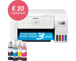 Dit is de Epson EcoTank ET-2876, een A4 multifunctionele Wi-Fi-printer met inkttank, inclusief tot 3 jaar inkt. Deze A4-inkjetprinter met gebruiksvriendelijk LCD-scherm is perfect voor moderne, drukke huishoudens en heeft hervulbare inkttanks, waarbij één set flessen het equivalent heeft van maximaal 72 cartridges voor ultralage printkosten per pagina. Extra voordelen zijn mobiel printen, Wi-Fi, kopiëren en scannen. Bespaar tot wel 95% op uw printkosten met Epson EcoTank-printers zonder cartridges. Dankzij de speciaal ontworpen inktflessen met hoog rendement kunnen de geïntegreerde inkttanks eenvoudig worden gevuld. Zonder cartridges maar met flexibele connectiviteitsfuncties en een LCD-scherm is deze printer perfect voor iedereen die op zoek is naar prints van hoge kwaliteit tegen ongelofelijk lage kosten per pagina. Kenmerken Cartriges behoren tot het verleden: Met EcoTank kunt u probleemloos thuis printen. U kunt de inkttanks met hoge capaciteit gemakkelijk en snel bijvullen. De flessen hebben een sleutelvergrendeling waardoor ze alleen op de juiste kleur kunnen worden gebruikt. Blijf besparen: Met deze voordelige printer bespaart u tot wel 95% op uw printkosten. Hij wordt geleverd met inkt voor maximaal 3 jaar. Met één set inktflessen kunnen tot wel 4500 pagina’s in zwart-wit en 7500 pagina’s in kleur worden afgedrukt. Dat is hetzelfde als maximaal 72 cartridges! Epson Smart Panel-app: Met deze app kunt u uw printer bedienen vanaf uw smart device. Je kunt documenten en foto's afdrukken, kopiëren en scannen, uw printer instellen, controleren en problemen oplossen, en je creativiteit de vrije loop laten met een breed scala aan artistieke sjablonen. Boordevol functies: Met een LCD-scherm van 3,7 cm, een sheetfeeder voor honderd pagina’s aan de achterkant, de mogelijkheid om foto’s randloos te printen (tot 10 x 15 cm) en een printsnelheid tot wel tien pagina’s per minuut kan je met gemak een groot aantal taken uitvoeren in korte tijd. Moderne flexibiliteit: Dankzij het compacte design en volledige Wi-Fi- en Wi-Fi Direct-connectiviteit kunt u deze printer eenvoudig in uw huidige thuissituatie integreren en vanaf mobiele telefoons, tablets en laptops printen. Beter gebouwd: Dankzij Heat-Free-printtechnologie gaat de printkop net zolang mee als de printer. Dat betekent geen onnodige vervangingsonderdelen of upgrades en een lager stroomverbruik. De printkop is ook ontworpen om verstopping van de nozzles te voorkomen. Multifunctionele A4-printer: Hoogwaardig printen, kopiëren en scannen in één. Dankzij draadloze connectiviteit kunt u overal printen. Gebruik de Epson Smart Panel-app om vanaf uw mobiel in te stellen, te controleren, te printen en meer. Inkttanksysteem wat u eenvoudig, probleemloos kunt vullen met flessen. Bovendien zorgt het EcoTank-flessensysteem met sleutelvergrendeling ervoor dat dit snel, gemakkelijk en foutloos gebeurt. Met één set flessen print u tot wel 4500 pagina’s in zwart-wit en 7500 pagina’s in kleur. Inhoud van de doos 4x 65 ml afzonderlijke inktreservoirs (zwart, cyaan, geel, magenta) Hoofdapparaat Stroomkabel Plaatsingshandleiding Garantiebewijs Goed om te weten Geschikte inkt: Epson 104 EcoTank inktfles Zie voor onderbouwingen van de percentages/ paginaopbrengst https://www.epson.nl/nl_NL/for-home/ecotank