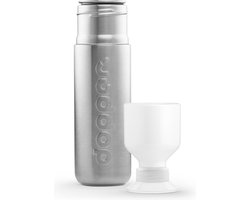 Maak je sterk voor schone oceanen met deze Dopper! Deze robuuste fles is de nieuwste aanwinst in de bloedlijn van Staal. Met zijn 490 ml is deze Dopper weliswaar kleiner dan de Dopper Steel, maar hij is zeker niet minder stoer en sexy. Integendeel, deze drinkfles kan dankzij ‘t praktische formaat en bescheiden gewicht mee op elk avontuur. Zo blijf jij altijd en overal gehydrateerd. Met zijn stalen uitrusting is dit de edele ridder van de Dopper collectie. Deze onbevreesde avonturier reist overal met jou mee naartoe, hoe wilder hoe beter. Of je nou gaat bootcampen in de Scheveningse modder, surfen op de schuimende zeedaken van Zuid-Afrika, op zoek gaat naar jezelf in de outbacks van Australie of jezelf juist gaat verliezen op Ibiza; deze fles staat aan jouw zijde. Met deze geharnaste waterfles breek je bovendien een lans voor schonere oceanen! Drink slok voor slok de oceanen schoon Jaarlijks worden er maar liefst 200 miljoen ton plastic wegwerpflesjes verkocht. Een deel van deze plastic flesjes wordt gerecycled, de rest belandt in stortplaatsen of nog erger: in zee. Hier breekt het plastic niet af, maar valt het uiteen in piepkleine stukjes. Deze zogenoemde microplastics worden door zeedieren aangezien voor voedsel, enne drie keer raden wie zeedieren dan weer aanzien voor voedsel: wij! Zo kan het zomaar gebeuren dat jouw tonijn in de toekomst wordt geserveerd op een bedje van microplastics. Met de aankoop van de Solid Steel hou jij de plastic soep van je menu. Door deze Dopper te hervullen met kraanwater bespaar je immers veel plastic van wegwerpflesjes! Let op: dit is geen thermosfles 100% vaatwasmachine bestendig Nederlands ontwerp, 18/8 staal, roestvast (fles) Drinken uit de geïntegreerde beker of gewoon zoals je uit een fles drinkt. Compacte inhoud van 490 ml Elke verkochte fles draagt bij aan bewustwordingscampagnes, educatie over plasticvrije oceanen en het opzetten van schoon drinkwater-projecten in Nepal. Fles is te veranderen in een wijdhals fles, zodat er ijsblokjes in kunnen BPA/weekmaker en gifvrij