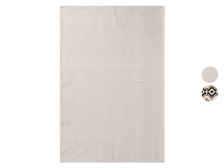 Eigenschappen. Geschikt voor de hele woning en voor vloerverwarming. Verkrijgbaar in 2 verschillende kleuren: Grijs. Zwart/wit. Materiaal 100% katoen. Afmetingen 140 x 200 cm. Gewicht ca. 2,6 kg. . Materiaal: katoen. Afmetingen: 140 x 200 cm