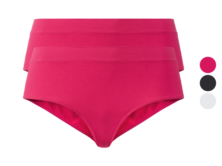 ESMARA®. Dameshipster, 2 stuks, met ribstructuur. Eigenschappen. Zacht en soepel op de huid. Naadloos - zonder vervelende zijnaden. Met ribstructuur. Optimale pasvorm door. LYCRA® elastaan 2 stuks. Kleuren: roze, zwart, wit. Materiaal 86% polyamide, 14% elastaan. Onderhoudsvoorschriften. Wassen bij maximaal 40°C (fijnwas). Niet bleken. Niet drogen in de droogtrommel. Niet strijken. Niet droog reinigen. Maten. S (36/38) -. XL (48/50). Mijn. Lidl-maat - zo eenvoudig is het. Bezoek gewoon de. Lidl-maatwijzer . Voor uw groep personen en productgroep de gemeten lichaamsafmetingen invoeren en dan op de knop. Berekenen drukken. De maat wordt dan direct weergegeven. . Kleuren: roze, zwart, wit. Kenmerken: naadloos - zonder lastige zijnaden