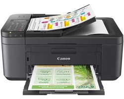 Dit is de Canon PIXMA TR4755i Multifunctionele Inkjetprinter. Deze All-in-One printer kan bestanden van meerdere pagina's kopiëren, scannen en faxen. Dankzij de naadloze Wi-Fi-connectiviteit is deze printer ideaal voor thuisgebruik. Kenmerken Slimme bediening: Met Wi-Fi-connectiviteit en de Canon PRINT-app kun je printerfuncties bedienen vanaf je smartapparaten. Schakel eenvoudig over naar Wireless Direct als je geen beschikking hebt over Wi-Fi. Blijf in de Cloud: Vereenvoudig het scannen naar en printen vanuit je cloudopslag met PIXMA Cloud Link via de Canon PRINT-app. Verhoog de productiviteit: Verhoog de efficiëntie met automatisch dubbelzijdig printen en een automatische documentinvoer (ADF) voor 20 vel voor het kopiëren en scannen van documenten met meerdere pagina's. Ideaal voor het kantoor aan huis: 4-in-1 mogelijkheden in één compacte printer, waardoor deze ideaal is voor gebruik in het kantoor aan huis. In de verpakking All-in-One Canon PIXMA TR4755i 2 FINE-cartridges Netsnoer Handleidingen en overige documenten Goed om te weten Een USB printerkabel wordt niet standaard meegeleverd. Gebruik originele Canon inktcartridges voor het beste printresultaat. Geschikte cartridges: Canon PG-575, PG-575XL (zwart) en CL-576, CL-576XL (kleur)