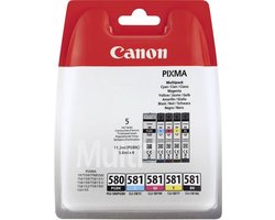 PIXMA Inktcartridges Sommige dingen werken beter samen dan alleen. Daarom is het verstandig om originele inkt en fotopapier van Canon te gebruiken, speciaal ontworpen voor PIXMA-printers, voor de best mogelijke resultaten. Vertrouw op Canon-inkt voor prachtige prints die lang meegaan. Waarom originele Canon-consumables gebruiken? Originele Canon-inkten halen het beste uit je Canon-printer, waardoor je altijd kunt rekenen op uitzonderlijke resultaten. Met Canon-inkten levert je Canon-printer keer op keer topprestaties. Helderdere en nauwkeurigere kleuren De originele Canon-inktformule levert ongelofelijk heldere en nauwkeurige kleuren, waardoor je gedenkwaardige momenten levensecht kunt vastleggen. Huidtinten komen natuurlijk over en lichte kleuren zijn levendig en realistisch. De zwarte pigmentinkt die wordt gebruikt voor het printen van documenten, produceert heldere, scherpe prints van kleine letters en zeer scherpe lijnen. Foto's die lang mooi blijven Originele Canon-inkt en origineel Canon-fotopapier zijn voor elkaar gemaakt. Hiermee maak je prints van uitmuntende kwaliteit die tot lang na het printen bestand blijven tegen vervaging. Printen met Canon-fotoprinters met echte ChromaLife100, ChromaLife100+ of LUCIA-inkten op Canon-fotopapier zorgt ervoor dat je afbeeldingen een leven lang mooi blijven. Bescherm je printer Met Canon's unieke FINE-printkoptechnologie die in elke PIXMA-printer wordt gebruikt, maak je prints van uitstekende beeldkwaliteit en print je documenten met hoge snelheid. De diameter van de spuitmondjes is slechts 0,=9 mm. Het is daarom zeer belangrijk inkt te gebruiken die speciaal is ontwikkeld om met deze nauwkeurige FINE-printkoppen te kunnen werken. Originele inkt garandeert printkwaliteit en zorgt voor een langere levensduur van je printer. Canon PGI-580/CLI-581. Merkcompatibiliteit: Canon, Printkleuren: Zwart, Cyaan, Magenta, Geel, Compatibiliteit: Pixma TS6150, TS6151, TS6250, TS8150, TS8151, TS9150, TS9155, TR7550, TR8550