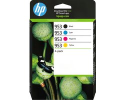 Dit is de HP 953, een originele inktcartridge in de kleuren zwart, cyaan, magenta en geel. Maak professionele documenten. Originele HP inktcartridges bieden een indrukwekkende betrouwbaarheid, beproefde printkwaliteit, een consistente paginaopbrengst en uitstekende resultaten. Kenmerken Betrouwbare prestaties en opvallende resultaten: Originele HP inktcartridges zijn speciaal ontworpen om samen te werken met je HP printer of all-in-one. Professionele kwaliteit, ideaal voor zakelijk gebruik: Print consistent professionele zwarte tekst en kleuren met inkt op pigmentbasis die voor kantoorgebruik is ontwikkeld. Alle vier originele HP inktcartridges die je nodig hebt: Je bespaart jezelf tijd, geld en problemen met originele HP cartridges in één handige pack. Energiezuinig gebouwd: Originele HP cartridges zijn eenvoudig kosteloos te recyclen via HP Planet Partners.