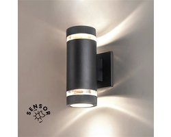 • Elumia® Wandlamp Zyvra – Buitenlamp met schemersensor(Dag/Nacht) - GU10 - Buitenverlichting zwart- Waterdicht IP65