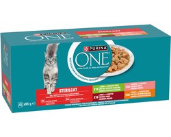 PURINA® ONE® STERILCAT Fijne Malse Reepjes in Saus met Rund en Wortels, Kalkoen en Sperziebonen, Kip en Sperziebonen & Zalm en Wortels kattenvoer natvoer 40 x 85g PURINA® ONE® natvoeding in 85g zakjes zijn complete en uitgebalanceerde recepten die ma....
