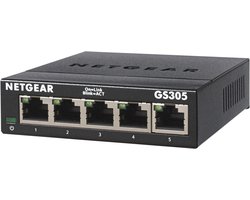 De Netgear GS305 is een gigabit unmanaged switch met 5 aansluitingen. Deze eenvoudig te installeren switch maakt het mogelijk om meerdere geschikte apparaten tegelijk te voorzien van een gigabit bekabelde verbinding. Hierdoor vormt de compacte switch de ideale basis voor je thuis- of bedrijfsnetwerk. Belangrijkste kenmerken van de GS305: 5 gigabit metalen aansluitingen LED-indicatoren voor status per poort Ophangsysteem voor aan de muur Compact en stevig Naast het compacte formaat van de switch beschikt het ook over een stevige metalen behuizing en metalen ethernetpoorten waardoor zowel je apparaat als je aansluitingen tegen een stootje kunnen. Eenvoudige installatie Deze switch is bovendien plug & play, wat betekent dat er geen configuratie vereist is. Zo kun je van een snel bedraad netwerk genieten zonder naar de switch om te hoeven kijken. Managed en Unmanaged Dit is een umanaged switch. Een unmanaged switch is een basis switch met geen geavanceerde of extra functies. Een managed switch is een apparaat met bredere mogelijkheden. Met een managed switch kan bijvoorbeeld snelheid per port bepaald worden. Ook kunnen functies zoals VLAN en linkaggregratie ingesteld worden naar eigen voorkeuren. Dit kan gedaan worden via een software (verschilt per apparaat).