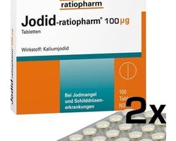 2x 100 stuks Jodid-ratiopharm 100 μg tabletten Bij jodiumgebrek en schildklierziekten. Jodium is belangrijk voor het hele organisme en heeft een centrale taak bij stofwisselingen. Werkzame stof: Kaliumjodide Toepassingsgebieden: Preventie van jodiumgebrek. Behandeling van een krop bij pasgeborenen, kinderen, jongeren en jongere volwassenen. Voor risico's en bijwerkingen lees de bijsluiter en raadpleeg je arts of apotheker. Werking jodium tabletten2x 100 stuks Jodid-ratiopharm 100 μg tabletten Bij jodiumgebrek en schildklierziekten. Jodium is belangrijk voor het hele organisme en heeft een centrale taak bij stofwisselingen. Werkzame stof: Kaliumjodide Toepassingsgebieden: Preventie van jodiumg....