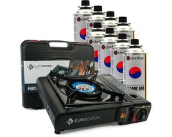 Het Eurocatch Kooktoestel is Ideaal voor kamperen of een gezellige picknick! Met een krachtig vermogen van 2500 Watt en handige elektrische ontsteking, heb je nooit meer problemen met aansteken. Het draagbare design en robuuste draagkoffer maken dit kooktoestel jouw perfecte reisgezel. Werkt op gascartriges/ gasbussen die geplaatst kunnen worden in het ingebouwde compartiment. 8 stuks meegeleverd (kleur etiket gasbus kan afwijken) - Dit draagbare kooktoestel op gas is perfect voor jouw reizen en kampeeravonturen! Het Eurocatch Kooktoestel is Ideaal voor kamperen of een gezellige picknick! Met een krachtig vermogen van 2500 Watt en handige elektrische ontsteking, heb je nooit meer problemen met aansteken. Het draagbare design en robuuste draagkoffer maken dit ....