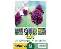 Dit papieren draagtasje bevat 70 laatbloeiende bloembollen die allemaal super aantrekkelijk zijn voor de honing bij, hommels en alle wilde bijen maar ook de vlinders komen genieten van deze bloemen. Hiermee kan u de hongere bijen na de winter voldoen....