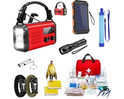 Dit DreamGoods Noodpakket is meer dan een verzameling spullen - het is een complete overlevingsoplossing. Centraal in dit pakket staat een krachtige, solar-opwindbare noodradio met 20.000mAh!! batterij. Hiermee blijf je altijd op de hoogte van belangrijk nieuws en waarschuwingen, heb je altijd verlichting en kun je mobiele apparaten opladen, ook bij stroomstoringen! Naast deze noodradio beschikt dit noodpakket ook over andere items die essentieel zijn in verschillende noodsituaties. Van energiebronnen en verlichting, tot aan waterzuivering en warmtebehoud. Dit pakket is met zorg samengesteld en bevat precies wat je nodig hebt om direct te kunnen handelen. Geen losse onderdelen, geen twijfel: alles zit erin. Waarom dit DreamGoods Noodpakket? Alle geadviseerde producten in één pakket.Dit DreamGoods Noodpakket is meer dan een verzameling spullen - het is een complete overlevingsoplossing. Centraal in dit pakket staat een krachtige, solar-opwindbare noodradio met 20.000mAh!! batterij. Hiermee blijf je altijd op de hoogte van belang....