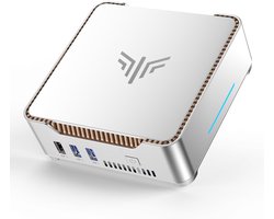 Belangrijkste Kenmerken: Ultrakompact & Licht Zilver Design: Slechts 100 x 100 x 36 mm groot en 270 gram licht. Het elegante zilveren oppervlak ("oppervlaktebehandeling met olie") past in elke omgeving en bespaart maximaal ruimte. Zeer Stille & Effectieve Koeling: Geavanceerd aluminium koelblok (35811 mm²) met een stille 60mm ventilator (2300 rpm) en dubbele zij-uitlaatopeningen. Garandeert betrouwbare prestaties en lage temperaturen (tot 15W TDP) zonder storend geluid. Dual 4K Uitgang: Sluit probleemloos twee schermen aan via HDMI 2.0 en DisplayPort 1.4, beide ondersteunen 4K@60Hz voor scherpe beelden. Windows 11 Pro Inbegrepen: Direct klaar voor gebruik met het volledige Windows 11 Pro besturingssysteem. Energiezuinige Prestaties: Aangedreven door de efficiënte Intel Processor N95 (4 cores/4 threads, tot 3.4 GHz). Ideaal voor productiviteit, surfen, streaming en lichte applicaties. Technische Specificaties:Belangrijkste Kenmerken: Ultrakompact & Licht Zilver Design: Slechts 100 x 100 x 36 mm groot en 270 gram licht. Het elegante zilveren oppervlak ("oppervlaktebehandeling met olie") past in elke omgeving en bespaart maximaal ruimte. Zeer Stille & Effec....