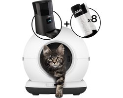 • Automatische Kattenbak - Zelfreinigende Kattenbak - Met kattenbakmat, 8 rollen opvangzakjes en Zedar A600 voerautomaat