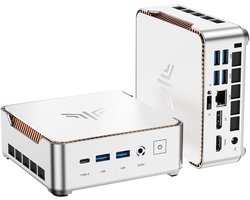 【Krachtige Mini PC met AMD Ryzen 4300U】 De NiPoGi P2 Mini PC wordt aangedreven door de AMD Ryzen 4300U-processor (4 cores, 4 threads, 2,7–3,7 GHz) met geïntegreerde AMD Radeon-graphics. Deze combinatie biedt uitstekende prestaties voor dagelijks kantoorwerk, 4K-videoweergave en multitasking. 【8 GB RAM + 256 GB SSD – Uitbreidbare configuratie】 Standaard uitgerust met 8 GB DDR4 RAM en een 256 GB M.2 SSD. De SSD zorgt voor snelle opstarttijden en vloeiende werking. De opslag kan eenvoudig worden uitgebreid tot 2 TB via de M.2-sleuf (NVMe PCIe 3.0 of SATA). Ideaal voor efficiënt (thuis)werken en alledaags gebruik. 【Ondersteuning voor drie 4K-beeldschermen】 Met de geïntegreerde graphics ondersteunt deze mini pc de gelijktijdige aansluiting van drie 4K-schermen via HDMI 2.0, DisplayPort en USB-C. Perfect voor een productieve werkruimte of een meeslepende mediabeleving. 【Uitgebreide aansluitingen en snelle connectiviteit】 Voorzien van veelzijdige poorten: Gigabit Ethernet, 4× USB 3.2, 2× USB 3.2 Gen2, USB-C, audio-uitgang en meer. Dankzij dual-band Wi-Fi 5 en Bluetooth 4.2 geniet u van stabiele draadloze verbindingen. Het systeem wordt geleverd met Windows 11 Pro voor direct gebruik. 【Compact, compleet en betrouwbaar】 De P2 heeft een compact metalen ontwerp en wordt geleverd met een VESA-bevestiging, netadapter, HDMI-kabel en handleiding. U ontvangt standaard 1 jaar garantie met toegang tot onze professionele klantenondersteuning. Kernspecificaties Behuizing: Zilver, gemaakt van ABS+PC Afmetingen: 128.2 x 128.2 x 44 mm (ultracompact) Inhoud verpakking: Mini PC, adapter, handleiding, HDMI-kabel, VESA-bevestiging, schroeven Processor (CPU): AMD Ryzen 3 4300U (4 cores, 4 threads) Grafische kaart (GPU): Geïntegreerde AMD Radeon Graphics Geheugen (RAM): 8 GB DDR4/Uitbreidbaar via 2x SO-DIMM slots (maximaal 64 GB totaal) Opslag (SSD): 256 GB M.2 SATA SSD/Uitbreidbaar via 2x M.2 2280 slots ( totaal max. 4 TB) Video-uitgangen (Triple Display): 1x HDMI 2.0 (4K@60Hz) 1x DisplayPort 1.4 (4K@60Hz) 1x USB 3.2 Gen2 Type-C (ondersteunt DisplayPort 1.4, 4K@60Hz) USB-poorten: 2x USB 3.2 Gen2 Type-A (10 Gbps) - voorzijde 4x USB 3.2 Gen1 Type-A (5 Gbps) - achterzijde 1x USB 3.2 Gen2 Type-C (10 Gbps, data + video) 1x Gigabit Ethernet (RJ45) Wi-Fi 5 (Dual-band 2.4/5 GHz) + Bluetooth 4.2 Besturingssysteem: Windows 11 Pro (voorgeïnstalleerd) Verzending & Service Vanuit Duits magazijn: Uw pakket wordt vanuit Duitsland verzonden. Levertijd: Na verzending 4-5 werkdagen in NL, +2 dagen voor BE. Garantie: 2 jaar garantie op uw product. Verpakking: Stevige kartonnen doos voor veilig transport. Voor vragen staan we voor u klaar.