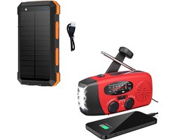 Opwindbare Solar Noodradio + Solar Powerbank 10.000 mAh Altijd voorbereid op noodsituaties, reizen en outdoor avonturen Wil je maximale zekerheid en energie, waar je ook bent? Met deze complete combinatie van een opwindbare solar noodradio én een kra....