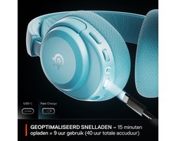 • SteelSeries Arctis Nova 3P Wireless — Draadloze Gamingheadset — Aqua — Mobile App Control — 40 uur accuduur — 2.4-GHz/Bluetooth — Afneembare microfoon — PS5, PS4, pc, Switch, mobiel