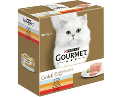 Uw kat is een echte fijnproever, die het liefst elke dag verschillende texturen en smaken probeert. Daarom heeft GOURMET Gold Fijne Mousse gecreëerd, heerlijke recepten om zijn verfijnde smaak te verwennen met een nieuwe smaakbeleving in elke maaltijd. Zachte mousse met vlees of vis, met zorg bereid om uw kat te laten genieten van een delicate en overheerlijke sensatie.