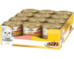 Gourmet Gold Fijne Hapjes met Zalm en Kip in saus (24 x 85 gram) U wilt niet dat uw kat verveeld raakt met haar maaltijden en daarom zoekt u altijd naar verschillende voedingsopties waarvan ze zal genieten. Daarom heeft GOURMET™ Gold Fijne Hapjes in ....